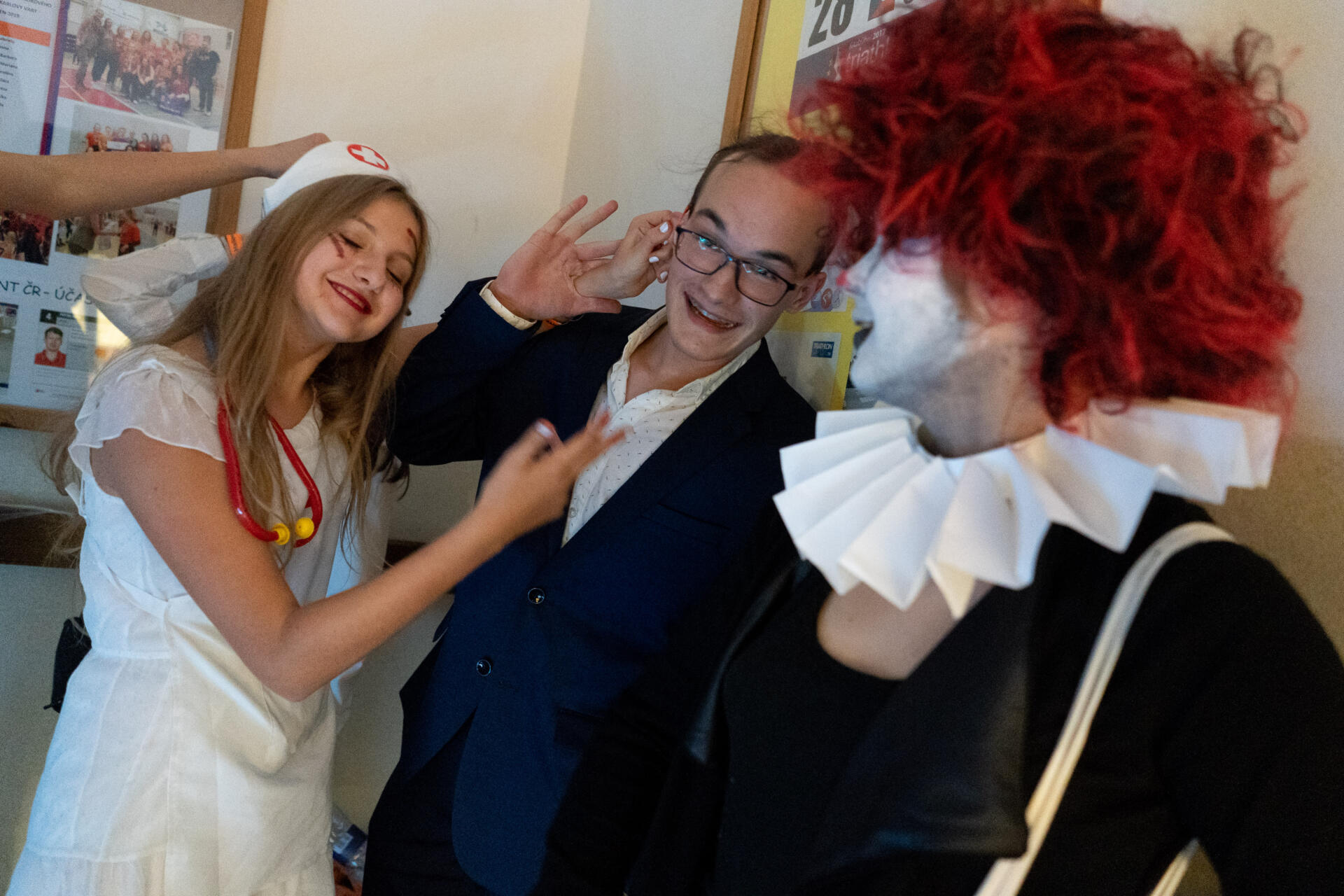 Strašidelný Halloween 30. 10. 2022 Nejstrašidelnější svátek v roce s možností pobýt ve škole až do půlnoci – no který student či která studentka by si to nechali ujít? Musíme pochválit studentský senát za organizaci a všechny zúčastněné za originální masky.